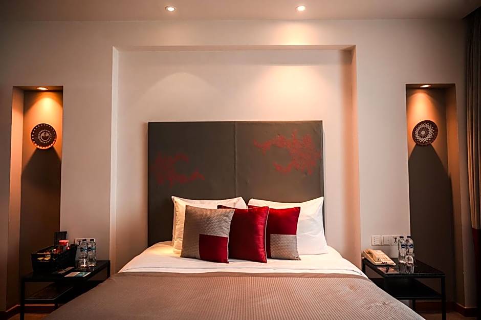 Super Stylish boutique rooms with the dominant colors of 7 Chakras – Red to Violet, that have been furnished with marble flooring and lounge chairs, a shower cubicle with rain showers and other specialized accouterments.
